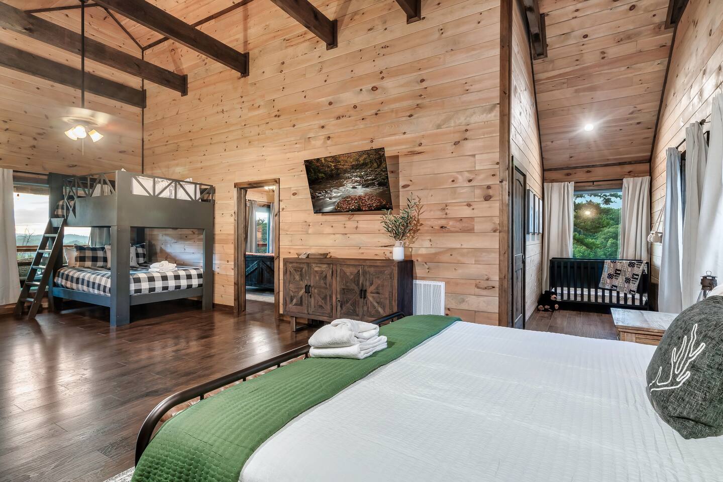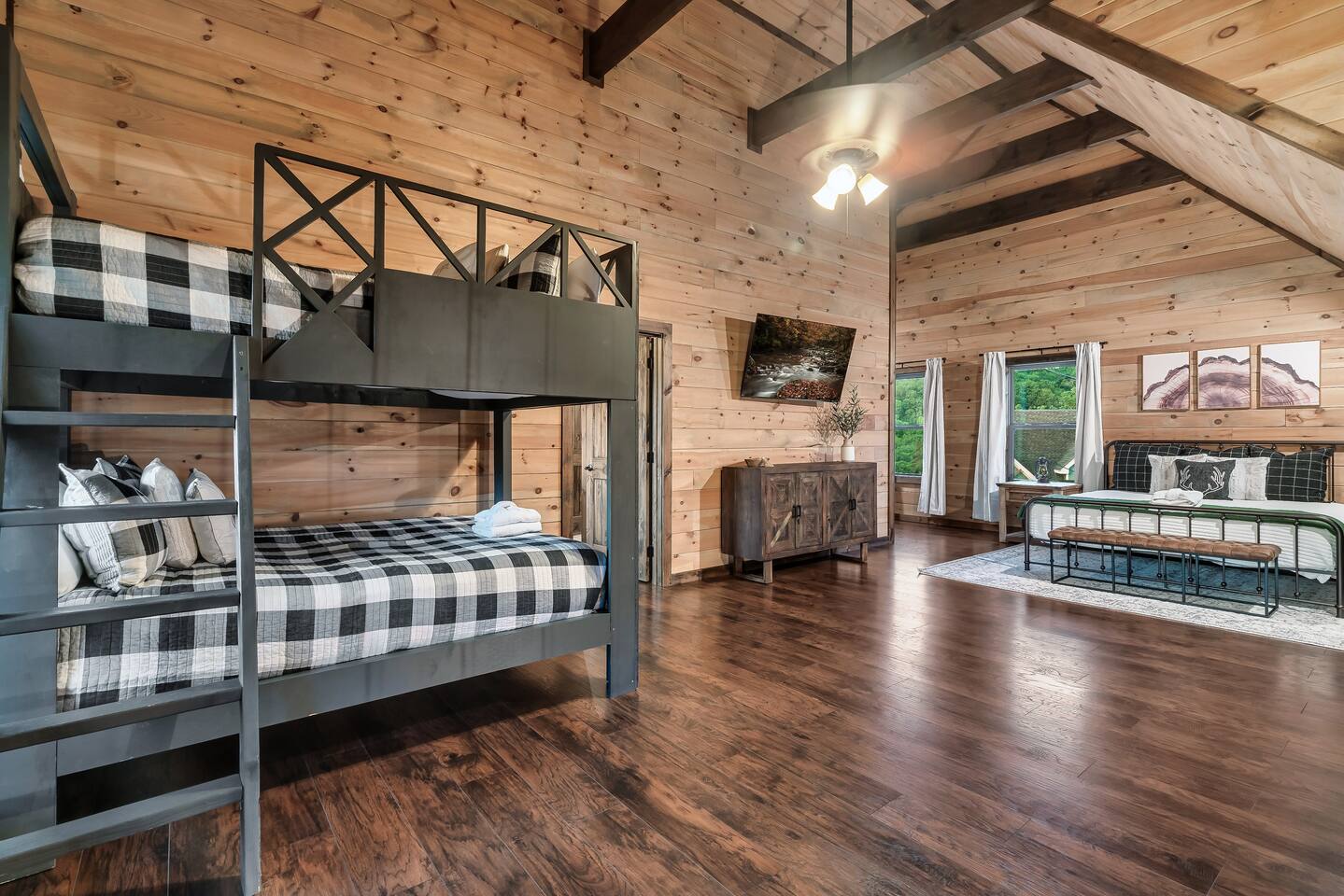 📍Location, Location, Location!📍 ✔ Nestled in Gatlinburg’s exclusive Chalet Village neighborhood 🏊0.5 miles → Access to 3 Seasonal Pools + Fitness Center (the pools will be closed from September 1st 2025-May 25th 2026) 🏓0.5 miles → Pickleball & Tennis Courts 🎢2 miles → Downtown Gatlinburg (Ripley’s, SkyLift, Shops & More!) 🌄3.5 miles → Great Smoky Mountains National Park entrance 🍴7 miles → Pigeon Forge Parkway (Dollywood, Dining, Fun!) 🛍️7 miles → The Island in Pigeon Forge --------------------------------------------------------- ☆Top Amenities☆ 🛌Sleeps up to 12 guests – perfect for family getaways or friend groups 🕹Game Room – Shuffleboard, pool table, arcade, and movie lounge 🧘Hot Tub – Relax with stunning mountain views 🍹Basement Bar + Lounge – Entertain with style 🏀Chalet Village Access – 3 Pools, Pickleball, Tennis, and Fitness Center 🔥Multiple Patios – Enjoy crisp mountain air on every level ☕Fully Stocked Kitchen – All the tools for home-cooked meals 🍼Crib included – Family-friendly setup 📺Smart TVs in every room ⚡EV Charging Port – Charge your car right on-site 🛜Fast Wi-Fi – Stream, work, or stay connected --------------------------------------------------------- ⚠️ Things You Should Know ⚠️ 🐾 Pet Policy Dogs are welcome! Our cleaners charge a $49 per night pet fee, which covers up to 2 dogs. If you’re bringing a pet, please include them in your reservation when booking so the fee is applied properly. Please review the pet section towards bottom of this description for additional information! ❄️ Winter Travel During winter months, mountain roads can occasionally become snowy or icy. 4WD or AWD is recommended if snow is in the forecast. We do not provide salt or shovels, so please plan accordingly if traveling during winter weather. 📋 Rental Agreement Required All guests are required to electronically sign a short-term rental agreement after booking. This is standard for professionally managed properties and helps protect both guests and owners. 🧻 Starter Supplies Provided We provide starter supplies to get your stay going, including toilet paper, paper towels, dish soap, and laundry detergent. For longer stays, you may want to bring additional supplies. 📜 House Rules Please review the House Rules section at the bottom of this listing before booking so you’re aware of all property guidelines and any associated fees or penalties. 🐻 Wildlife Bears and other wildlife are common in the Smoky Mountains. Please do not leave food or trash outside or in vehicles. --------------------------------------------------------- 🛏️Where You'll Sleep🛏️ Bedroom 1 (Main Level) → King Bed + Full Bath + Smart TV + Patio Access Bedroom 2 (Upper Level) → King Bed + Shared Full Bath + Smart TV Loft Area (Upper Level / Bedroom 3) → Bunk Bed w/ 2 Queen Beds + King Bed + Crib + Smart TV + Shared Full Bath Game Room Level (Basement / Bedroom 4) → Bunk Bed w/ 2 Queen Beds + Half Bath + Game Lounge + Smart TV 🛁 2.5 Bathrooms total --------------------------------------------------------- 🍳Kitchen, Dining & Living🍳 -Full kitchen with cookware, appliances, and essentials -Dining space for group meals -Cozy living room with fireplace + TV -Main-level patio with outdoor seating and mountain views --------------------------------------------------------- 🎯Entertainment & Outdoor Fun🎯 🕹Game Room – Pool table, arcade games, shuffleboard, movie lounge 🧘Hot Tub – Unwind with a mountain backdrop 🔥Multiple Patios – Sip coffee or wine with views 🏋️♀️Community Perks – Pools, pickleball, fitness center & more 📺Smart TVs + Strong Wi-Fi 🚗Parking for 3–4 vehicles (easy access) ⚡EV Charging Port – Stay charged up and ready --------------------------------------------------------- 💛What Guests Love💛 ✔ Renovated interior with stylish decor & luxury touches ✔ Bear sightings from the decks – keep your camera ready! ✔ Chalet Village amenities INCLUDED with your stay ✔ Room for the whole crew – 7 beds, no sofa beds! --------------------------------------------------------- 🐾 Pet-Friendly Tips🐾 We love hosting four-legged guests! To keep tails wagging and your stay stress-free, here are a few friendly tips: ✔ Leash Up for Safety – While exploring trails or open areas, we recommend keeping pets leashed for their safety. ✔ Clean-Up Crew – Please pick up after your pets to help keep the yard and property enjoyable for everyone. ✔ Paws Off the Furniture – Bring a cozy pet bed or blanket to help keep our furniture fur-free. ✔ Watch for Wildlife – We are in the mountains, so be mindful of curious critters! 🐶 We allow up to 2 dogs per stay. Please confirm your pet in your booking and let us know if you have any questions! --------------------------------------------------------- ❤️Why You'll Love It❤️ From bear sightings and game nights to soaking in the hot tub with sweeping views, this cabin blends mountain luxury with unbeatable convenience. You're minutes from the action but surrounded by peace. --------------------------------------------------------- ☆☆ Book your Chalet Village escape today — adventure, rest, and relaxation await! ☆☆