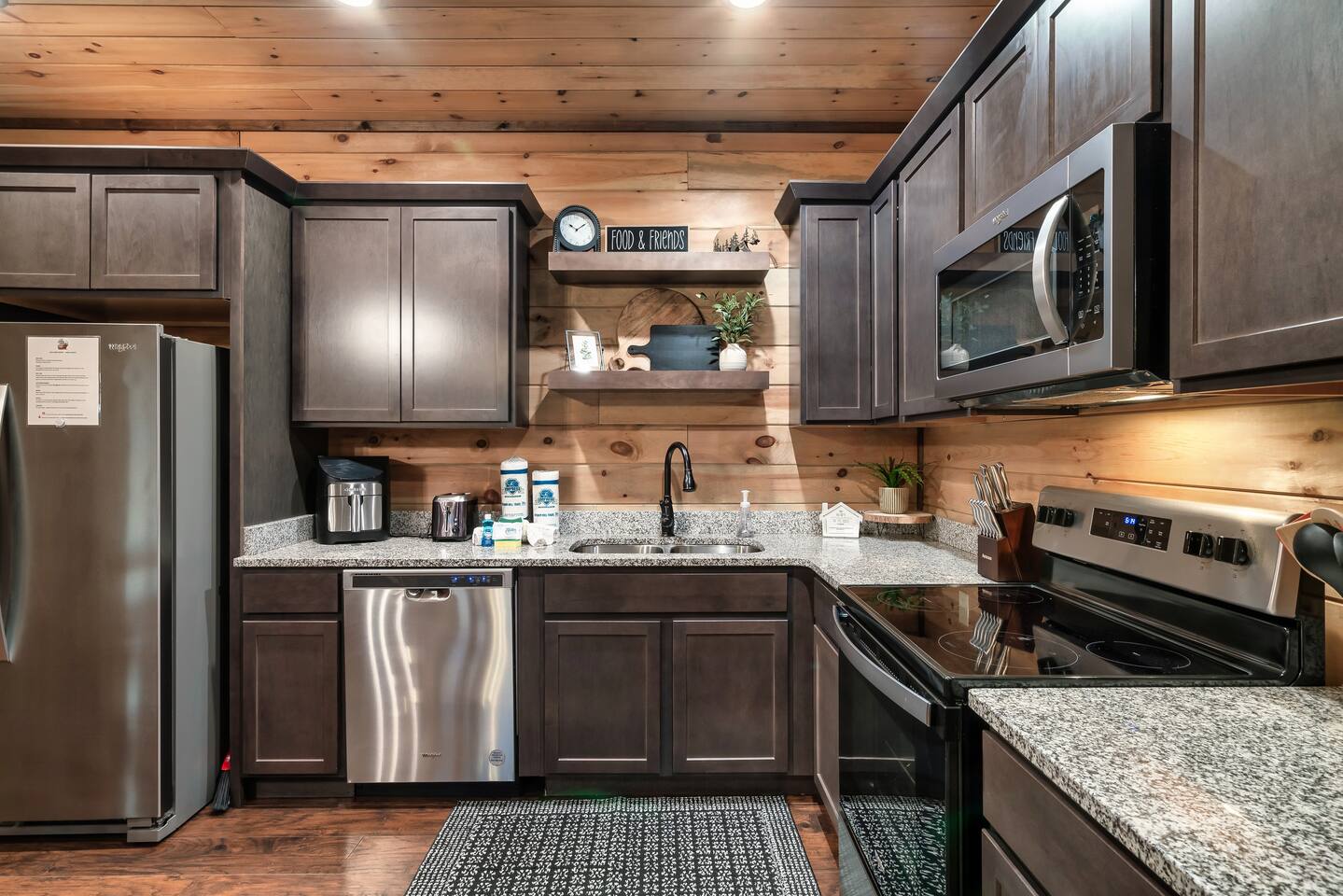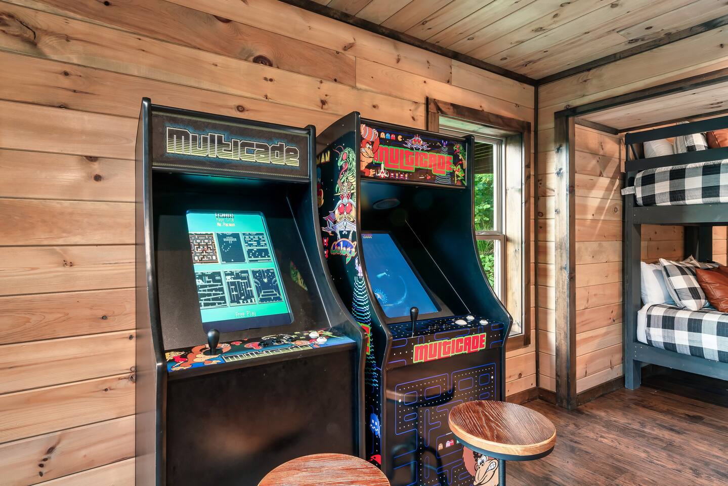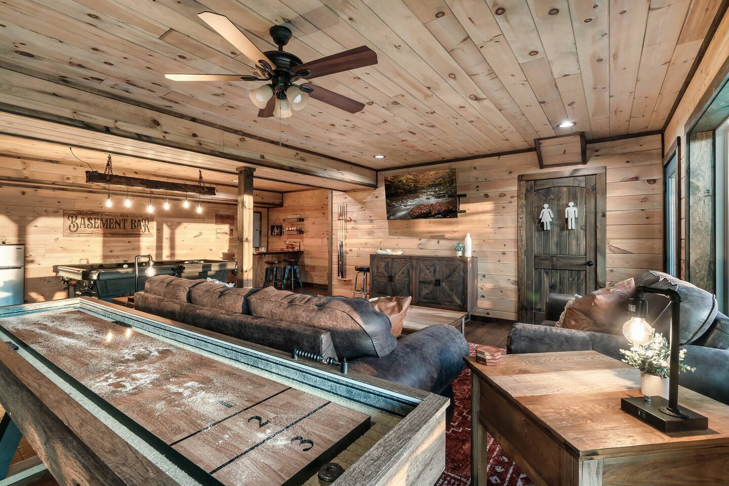 LUXURY meets LOCATION! Located in the coveted neighborhood of CHALET VILLAGE - you're minutes away from downtown Gatlinburg and have unique access to THREE POOLS, PICKLEBALL courts, and a FITNESS CTR! This 3-level spacious cabin is freshly renovated and PACKED with amenities including a pool table, hot tub, basement bar, shuffleboard, AND arcade games! Step outside on the multiple patios to take in the fresh mountain air and views. Keep your cameras ready for the frequent BEAR visitors!