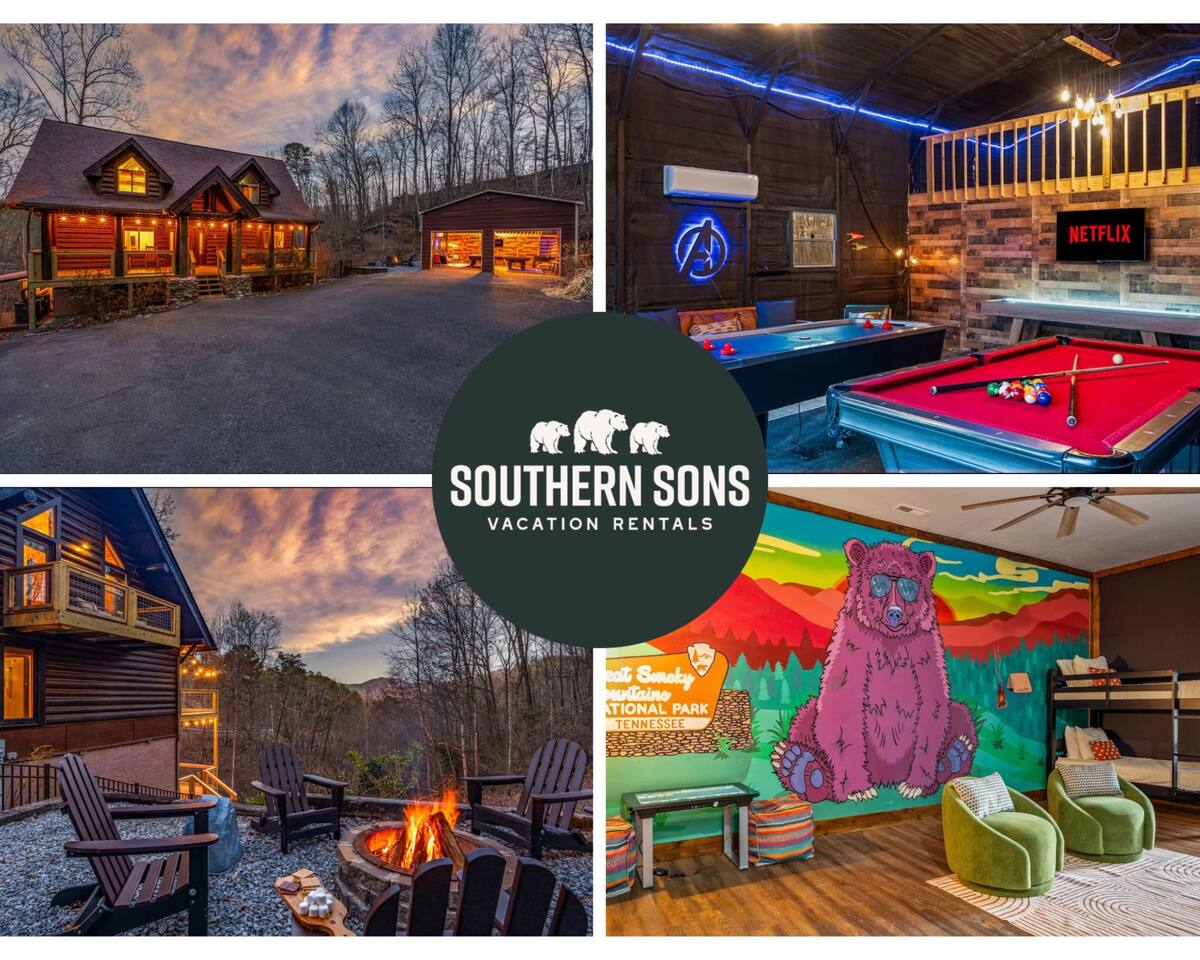 FRESHLY designed and PACKED with amenities! One of the most UNIQUE CABINS in the Smokies - this large luxury property features a massive GAME GARAGE w/ a pool table, foosball, shuffle board, air hockey and large TV for streaming! The cabin itself offers a SPACIOUS LAYOUT that's perfect for entertaining friends and family. Enjoy the multiple patios with MOUNTAIN VIEWS, hot tub, and fire pit! Your stay also includes complimentary access to a nearby pool and fishing pond!
