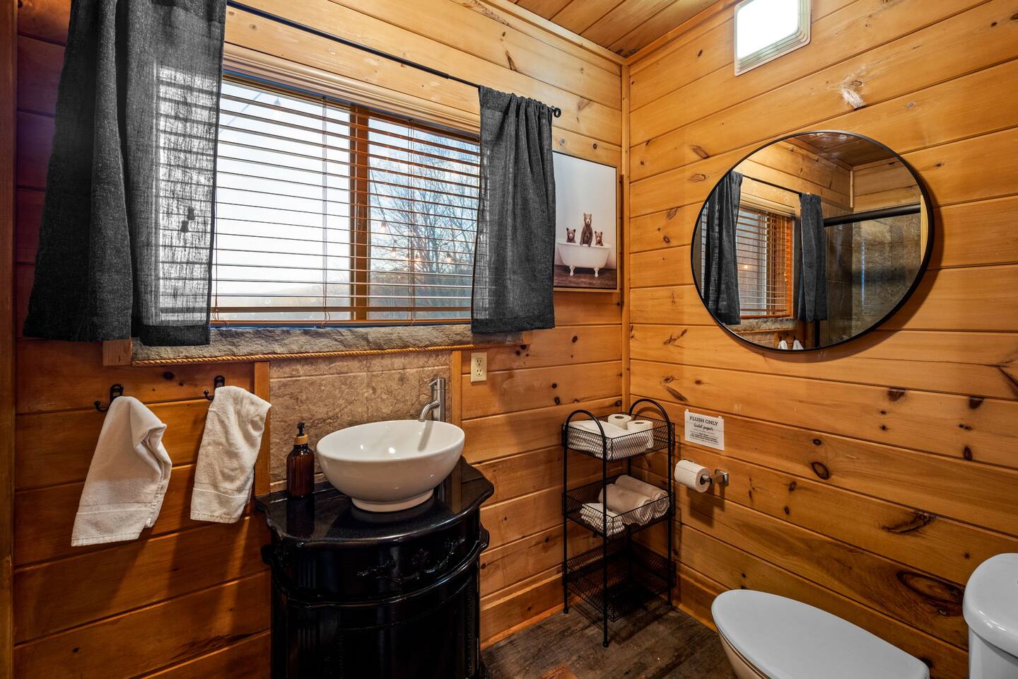 You will have private access to the entire cabin and outdoor areas during your stay. We offer easy self-check-in and there is plenty of space for four vehicles.