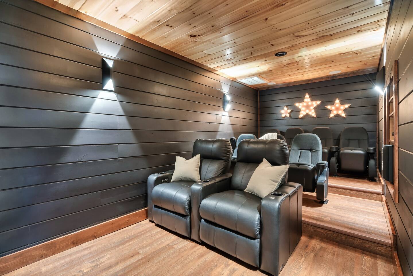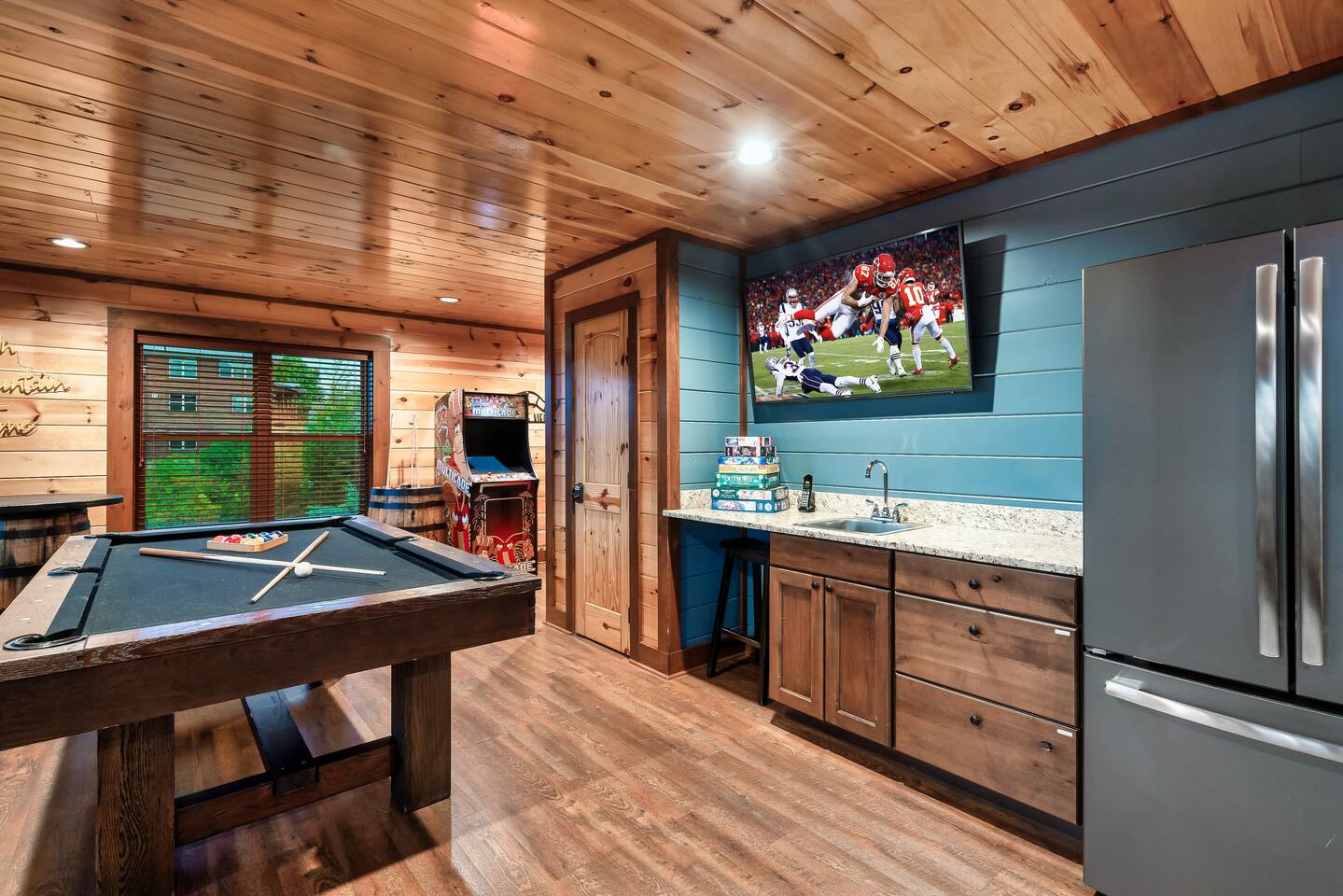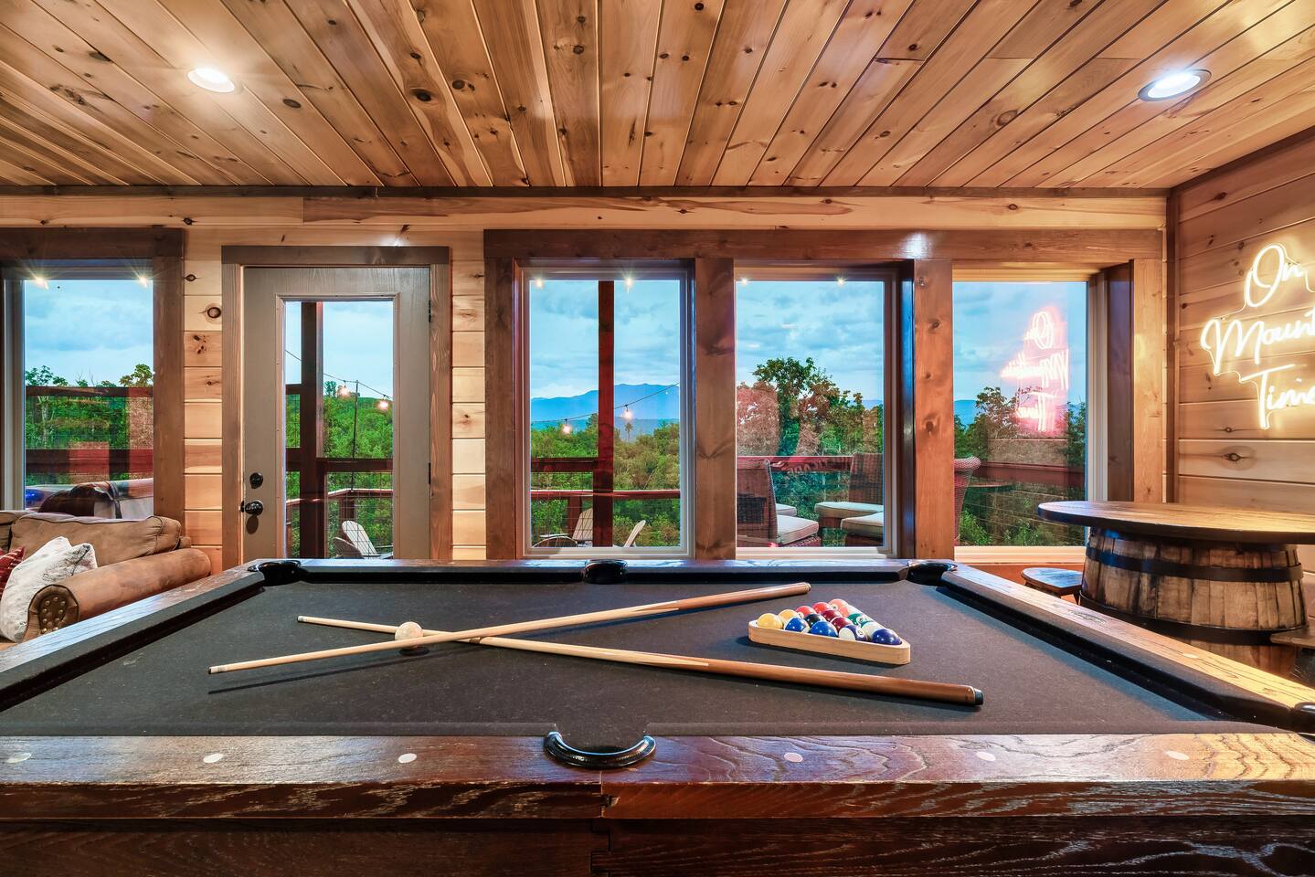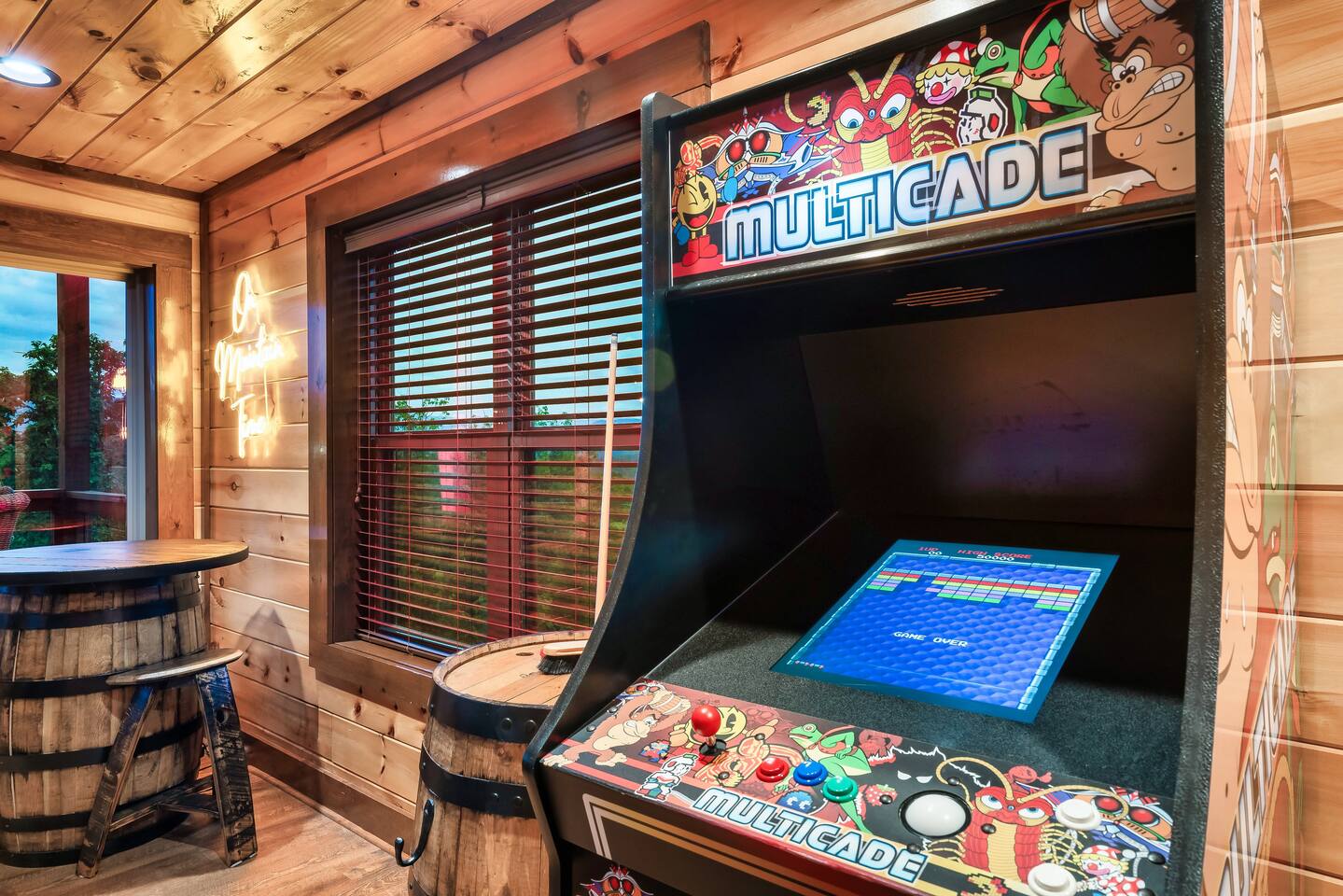 The Ideal Mountain Escape! Just 2 miles from Dollywood, this stunning 3-level cabin features breathtaking mountain views and endless entertainment. Inside, enjoy a spacious game room with a pool table and multicade, and a fully equipped cinema! Perfect for movies or the big game w/ friends!