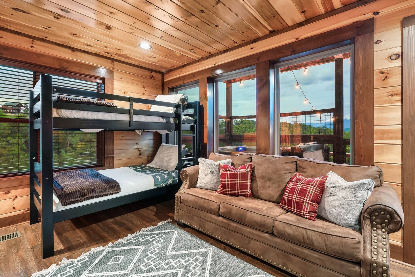 πLocation, Location, Location!π βFREEβ access to π₯Pickleball, πBasketball courts, π£Trout Fishing Pond, Playground, and more included with your stay, just 14 minutes away!! β Tucked in a peaceful wooded setting with easy access to fun, food, and adventure π’ 7 miles β Dollywood and Dollywood Splash Country π΄ 4 miles β The Old Mill Restaurant & Shops ποΈ 5 miles β Pigeon Forge Parkway (Dining, Attractions, Shopping!) π΄ 7 miles β Local Goat, a fav restaurant! β°οΈ 10 miles β Great Smoky Mountains National Park π» Frequent bear sightings β keep your cameras ready! --------------------------------------------------------- β Top-Rated Amenitiesβ π Sleeps up to 12 guests comfortably β perfect for families & groups πΉ Game Room β Pool table + multicade arcade system π₯ Free Access to Pickleball Courts π₯ Movie Theatre β Fully equipped with a top-notch sound system π§ Hot Tub β Soak and enjoy views of Mt. LeConte π₯ Gas Fire Pit β Relax on the main deck under the stars πΊ Smart TVs throughout the cabin βοΈ Fully stocked kitchen & coffee bar π Fast Wi-Fi β Stay connected with ease π Plenty of parking for 3β4 cars --------------------------------------------------------- β οΈ Things You Should Know β οΈ πΎ Pet Policy Dogs are welcome! Our cleaners charge a $49 per night pet fee, which covers up to 2 dogs. If youβre bringing a pet, please include them in your reservation when booking so the fee is applied properly. Please review the pet section towards bottom of this description for additional information! βοΈ Winter Travel During winter months, mountain roads can occasionally become snowy or icy. 4WD or AWD is recommended if snow is in the forecast. We do not provide salt or shovels, so please plan accordingly if traveling during winter weather. π Rental Agreement Required All guests are required to electronically sign a short-term rental agreement after booking. This is standard for professionally managed properties and helps protect both guests and owners. π§» Starter Supplies Provided We provide starter supplies to get your stay going, including toilet paper, paper towels, dish soap, and laundry detergent. For longer stays, you may want to bring additional supplies. π House Rules Please review the House Rules section at the bottom of this listing before booking so youβre aware of all property guidelines and any associated fees or penalties. π» Wildlife Bears and other wildlife are common in the Smoky Mountains. Please do not leave food or trash outside or in vehicles. --------------------------------------------------------- ποΈ Where You'll SleepποΈ Main Level β 1 King Bed + Attached Full Bath + Smart TV (2 ppl) Upper Level β 1 King Bed (2 ppl) + Queen Bunk Beds (4 ppl) (Separated by privacy wall) + Shared Full Bath + Smart TV for each bed Bottom Level β Twin Bunks (2 ppl) + Full Sleeper Sofa --------------------------------------------------------- π³ Kitchen, Dining & Livingπ³ β Fully equipped kitchen & Dining area β Open concept living room, with a Smart TV and Mtn views β Coffee bar for morning brews β Porch with mountain views, hot tub & gas fire pit --------------------------------------------------------- π― Entertainment & Outdoor Funπ― β Game Room with pool table and multicade β Movie Theatre with premium sound system β Hot Tub and Porch Swing with a view β Gas Fire Pit on main deck β Porches on all 3 levels with stunning mountain views --------------------------------------------------------- π What Guests Loveπ β Just minutes from top attractions β 3 Levels of space, comfort, and entertainment β Breathtaking mountain views from every deck β Perfect for group getaways or family vacations --------------------------------------------------------- πΎ Pet-Friendly TipsπΎ We love hosting four-legged guests! To keep tails wagging and your stay stress-free, here are a few friendly tips: β Leash Up for Safety - While exploring outside, please leash your pups β Clean-Up Crew - Kindly pick up after your pets β Paws Off the Furniture - Bring a cozy bed or blanket just for them β Watch for Wildlife - Bears are common in this area, so be alert πΆ We allow up to 2 dogs per stay. Please confirm your pet in your booking and reach out with any questions! --------------------------------------------------------- β€οΈ Why You'll Love It β€οΈ LUXURY meets LOCATION! Whether itβs movie night, a soak in the hot tub, or sipping coffee while gazing at Mt. LeConte, this 3-level cabin is packed with entertainment and mountain magic. --------------------------------------------------------- ββ Book now and make unforgettable memories in the Smokies! ββ