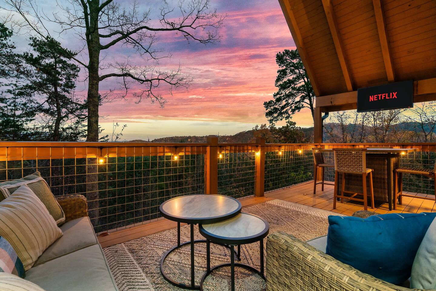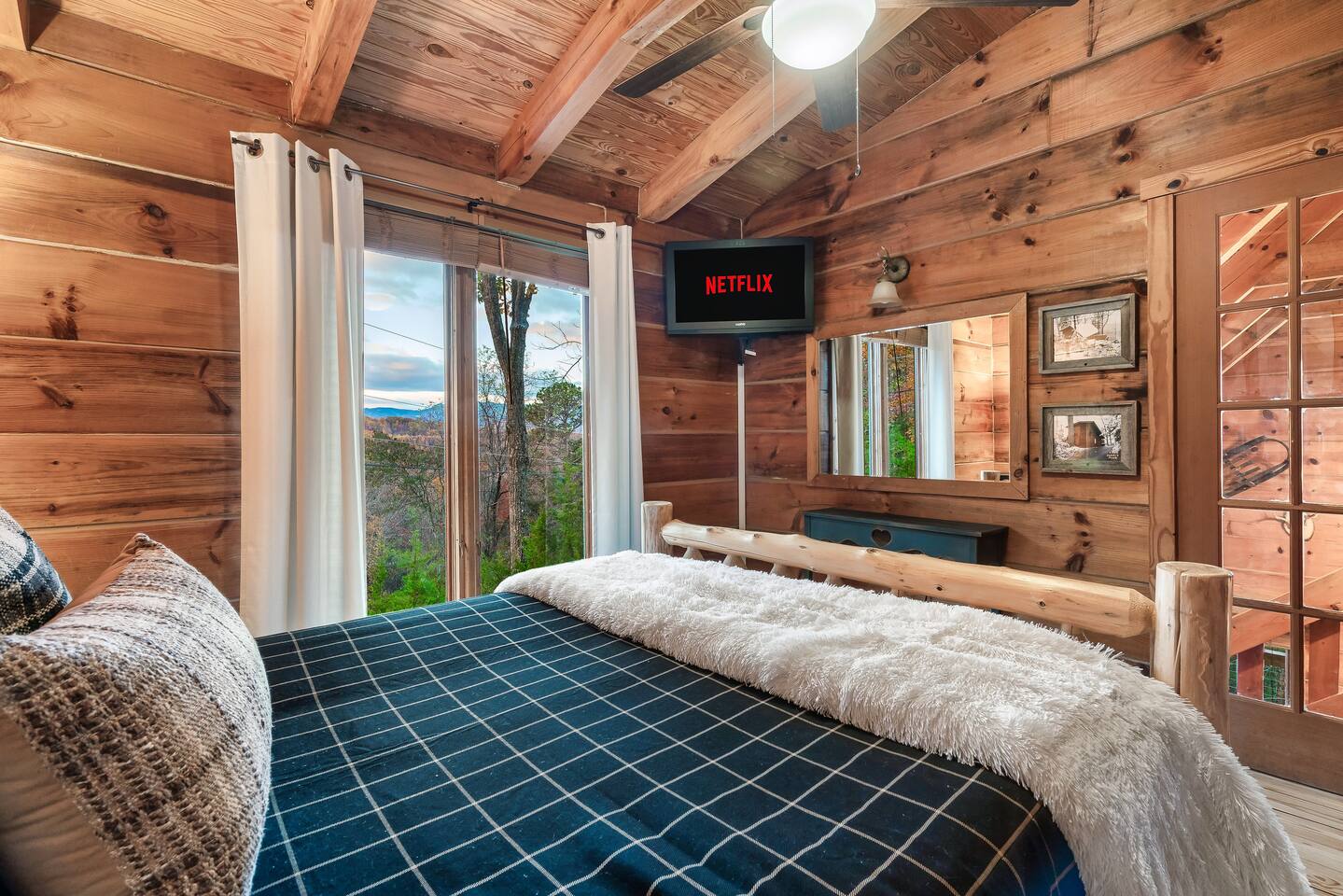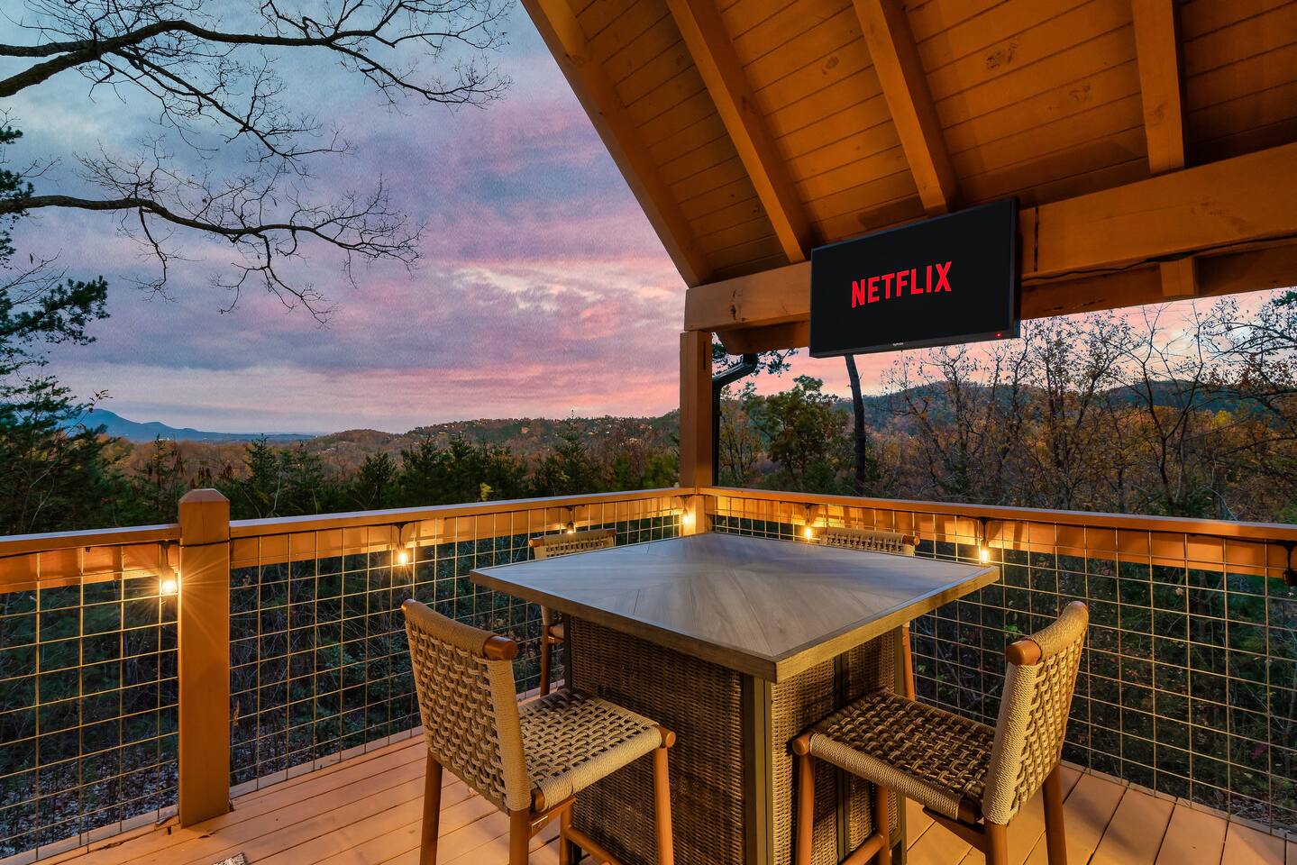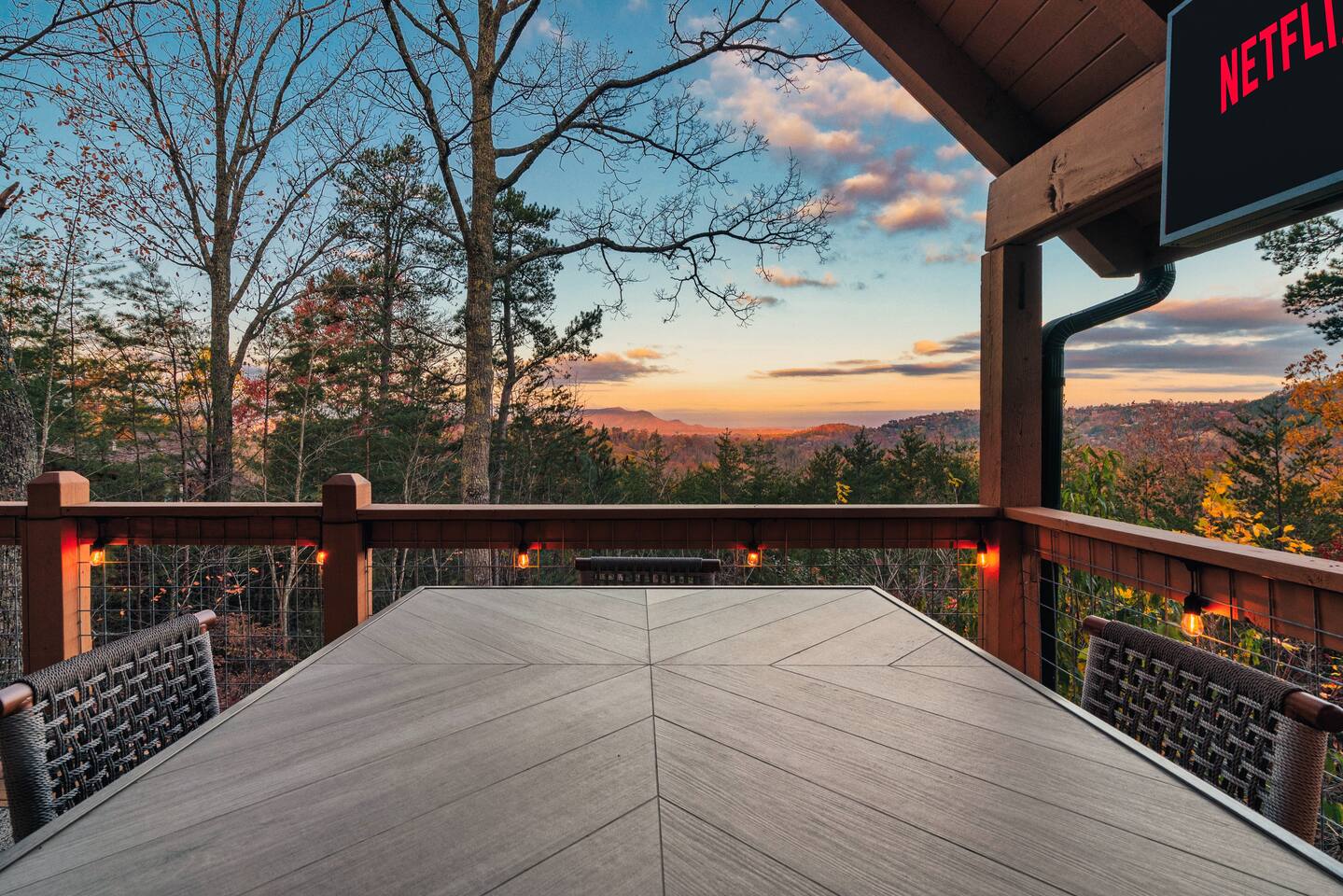 MOUNTAIN VIEW with CENTRAL LOCATION! It's NEAR IMPOSSIBLE to get these kind of views while being SO CLOSE to top attractions. Wake up w/ a cup of coffee on the porch overlooking Mt Leconte! At night soak up the views in the HOT TUB or kick back by the FIRE PIT! The interior is PROFESSIONALLY DESIGNED and the WOOD BURNING FIREPLACE gives you the Smoky Mtn vibe you've been looking for! Your stay comes with free access to a nearby resort featuring PICKLEBALL and a FISHING RIVER!