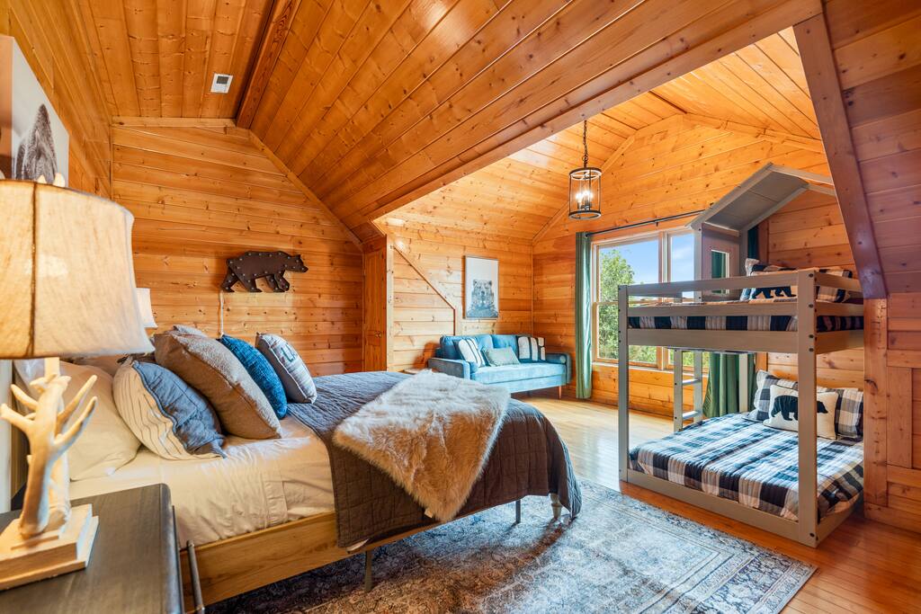 📍Location, Location, Location!📍 ✔ Private 2-acre lot with stunning mountain views 🐠10 miles to Ripley's Aquarium Of The Smokies ⛰️11 miles to Anakeesta ✔ Easy access (4WD not needed in good weather) ----------------------------------------------------------------- ☆Top Rated Amenities☆ 🛌 Sleeps up to 22 guests – Perfect for large groups of family and friends 🎮 Game Room – Pool table, shuffleboard, and 3 arcade machines 🎥 Movie Room – Equipped with comfortable chairs for family movie nights 🧘 Hot Tub – Soak while enjoying mountain vistas 🔥 Custom Fire Pit – Gather around for cozy nights 🍳 Large Fully Equipped Kitchen – Perfect for group meals 📺 Smart TVs & Fast Wi-Fi – Relax or work remotely 🛜 High-speed Wi-Fi – Stream, work, or connect with ease ----------------------------------------------------------------- 🛏️ Where You’ll Sleep🛏️ ⬇️Lower Level⬇️ Bedroom 1: Queen-over-Queen Built Ins + Twin Bed + Smart TV + Shared Full Bath (6 Guests) Bedroom 2: King Bed + 2 Twin Beds + Shared Full Bath (4 Guests) Bedroom 3: King Bed + Smart TV + Ensuite Full Bath (2 Guests) ➡️Main Level⬅️ Bedroom 4: King Bed + Smart TV + Ensuite Full Bath (2 Guests) ⬆️Upper Level⬆️ Bedroom 5: King Bed + Smart TV + Ensuite Full Bath (2 Guests) Bedroom 6: King Bed + Twin Bunks + Smart TV + Ensuite Full Bath (4 Guests) -Living Room: Pull-out sofa (2 Guests) --------------------------------------------------------- 🍳 Kitchen, Dining & Living🍳 -Fully equipped kitchen for group cooking -Large dining area with plenty of seating -Cozy living room with a pull-out sofa and Smart TV -Open-concept layout for easy entertaining --------------------------------------------------------- 🎯 Entertainment & Outdoor Fun🎯 -Fully stocked Game Room & Movie Room -Hot Tub with mountain views -Custom-built fire pit for s’mores and stories -Outdoor space perfect for group hangouts and relaxation --------------------------------------------------------- 💛 What Guests Love💛 ✔ Spacious layout, perfect for large groups ✔ Stunning mountain views and private setting ✔ Movie room & game room for endless fun ✔ Fully equipped for both relaxation and adventure --------------------------------------------------------- ❤️ Why You’ll Love It❤️ This cabin is more than a getaway—it's the ultimate mountain retreat. Whether you’re here to relax, celebrate, or explore, this space is perfect for making memories with your loved ones. --------------------------------------------------------- 🐾 Pet-Friendly Tips🐾 We love hosting four-legged guests! To keep tails wagging and your stay stress-free, here are a few friendly tips: ✔ Leash Up for Safety – While exploring trails or open areas, we recommend keeping pets leashed for their safety. ✔ Clean-Up Crew – Please pick up after your pets to help keep the yard and property enjoyable for everyone. ✔ Paws Off the Furniture – Bring a cozy pet bed or blanket to help keep our furniture fur-free. ✔ Watch for Wildlife – We are in the mountains, so be mindful of curious critters and bears! --------------------------------------------------------- ☆☆ Book your stay today and start your mountain adventure! ☆☆